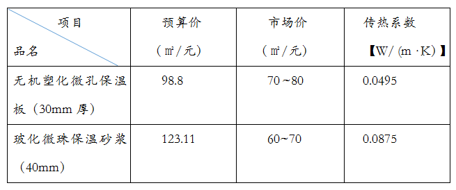 相對保溫砂漿而言,無機塑化微孔保溫板不僅有性能上的優勢,價格優勢也非常明顯(見下表)。
