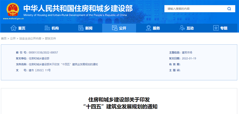 為指導和促進“十四五”時期建筑業高質量發展,根據《中華人民共和國國民經濟和社會發展第十四個五年規劃和2035年遠景目標綱要》,我部組織編制了《“十四五”建筑業發展規劃》。現印發給你們,請結合實際認真貫徹落實。